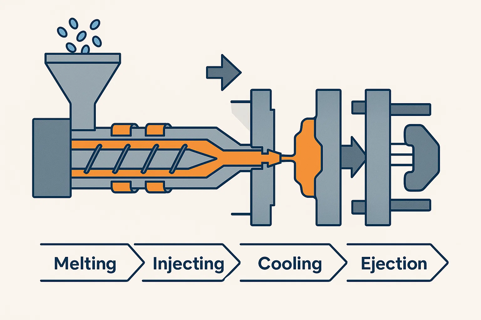 กระบวนการฉีดขึ้นรูปเป็นไปตามลำดับที่แม่นยำและเป็นวัฏจักร: