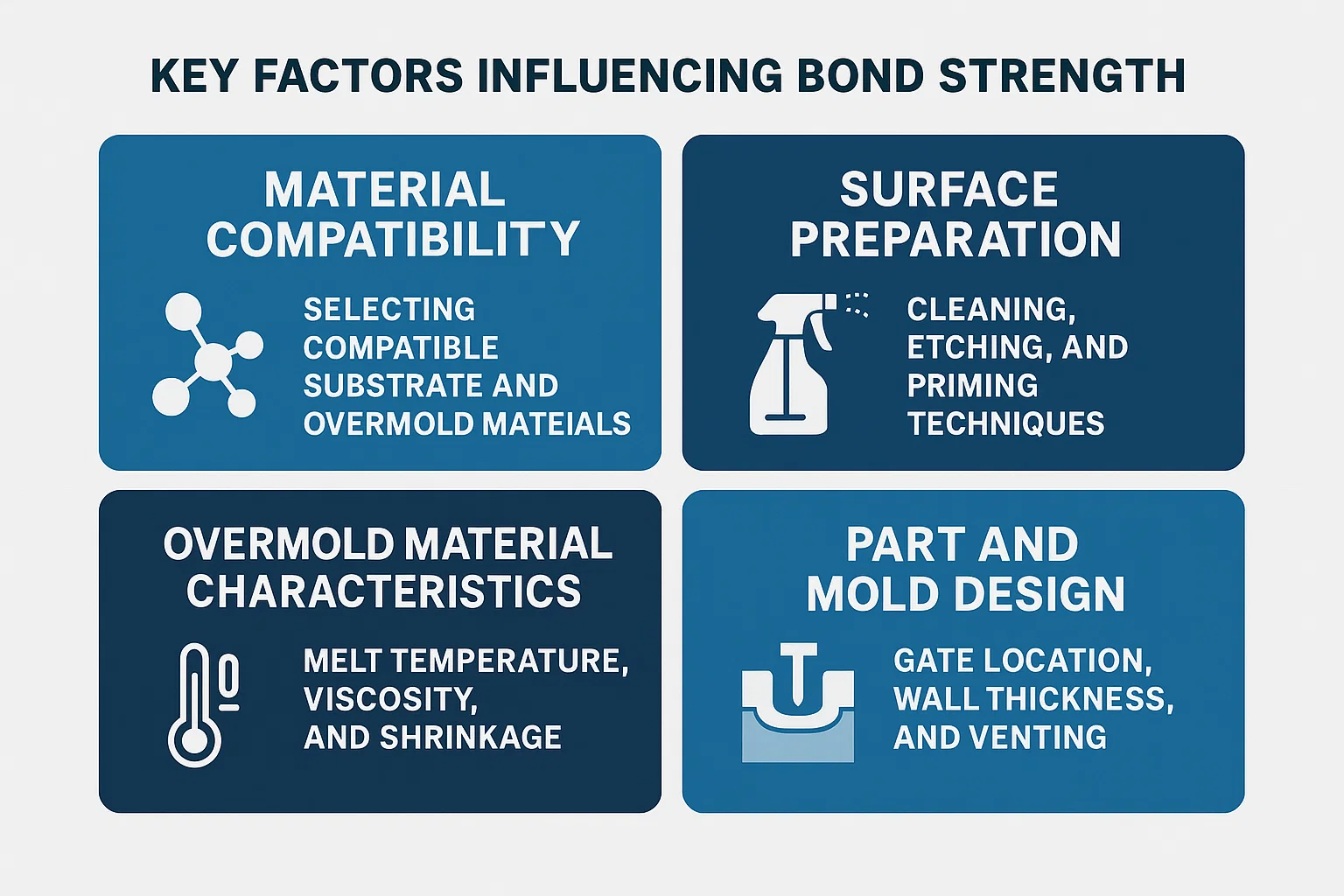 แรงและความเร็วที่วัสดุ overmold เข้าสู่โพรงมีความสำคัญสำหรับการเติมและการยึดเกาะที่เหมาะสม