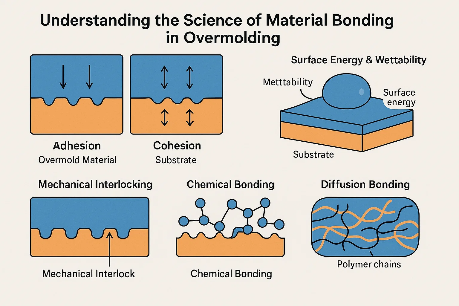 การบรรลุความผูกพันถาวรในการล้นเกินไม่ใช่เวทมนตร์ มันเป็นวิทยาศาสตร์ที่หยั่งรากในการทำปฏิกิริยากับวัสดุในระดับกล้องจุลทรรศน์ เพื่อให้ได้มาซึ่งการล้นหลามอย่างแท้จริงเราจำเป็นต้องเข้าใจหลักการพื้นฐานของ การยึดเกาะ และ การทำงานร่วมกัน และวิธีที่พวกเขานำไปใช้กับอินเทอร์เฟซระหว่างวัสดุของคุณและวัสดุ overmold ของคุณ