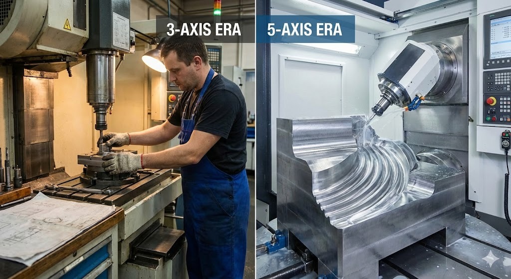 - ยุค 5 แกน: เปิดใช้งาน การตัดเฉือนความเร็วสูง (HSM) ของเหล็กชุบแข็ง ทำให้สามารถกัดรูปทรงอินทรีย์และโพรงลึกได้โดยตรง