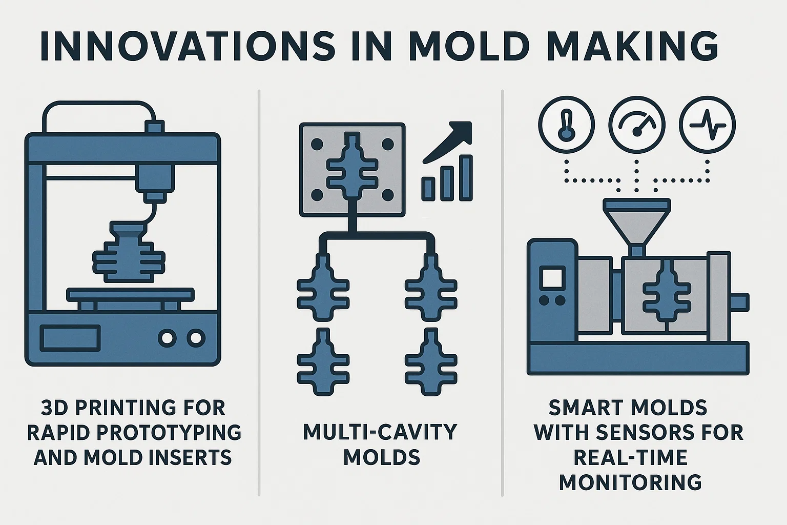 บางทีหนึ่งในนวัตกรรมที่เปลี่ยนแปลงได้มากที่สุดคือการบูรณาการของ การพิมพ์ 3 มิติ (การผลิตสารเติมแต่ง) เข้าไปในเวิร์กโฟลว์การทำแม่พิมพ์ ในขณะที่การพิมพ์ 3 มิติโดยตรงของแม่พิมพ์การผลิตเต็มรูปแบบยังคงมีข้อ จำกัด เนื่องจากความแข็งแรงของวัสดุและความต้องการผิวผิว แต่ผลกระทบต่อการสร้างต้นแบบและส่วนประกอบแม่พิมพ์พิเศษนั้นยิ่งใหญ่: