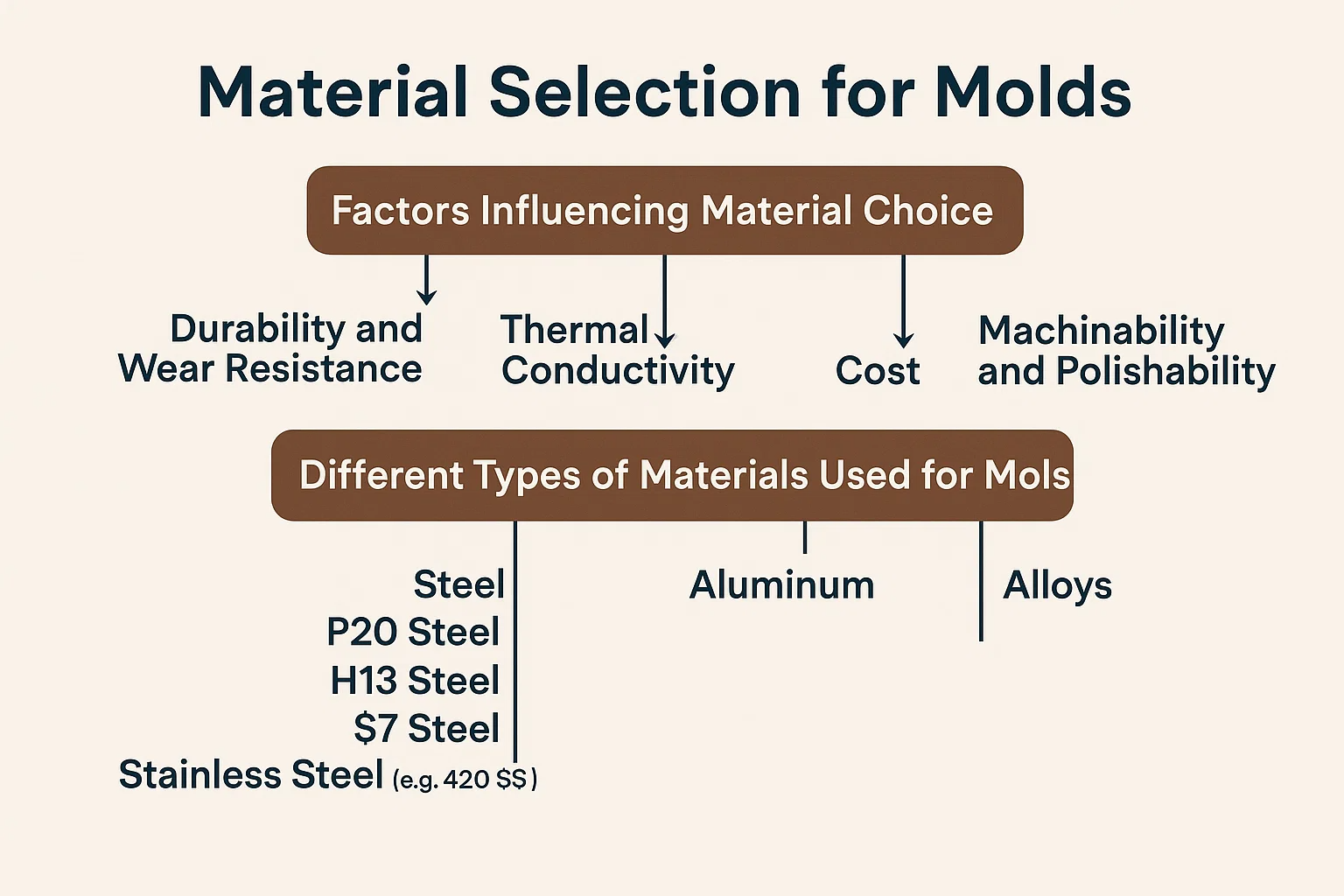 - ค่าใช้จ่าย : วัสดุแม่พิมพ์แตกต่างกันอย่างมีนัยสำคัญในราคา เหล็กกล้าเครื่องมือคุณภาพสูงมีราคาแพงกว่าอลูมิเนียมมาก ต้นทุนวัสดุจะต้องชั่งน้ำหนักกับปริมาณการผลิตที่คาดหวังและงบประมาณโครงการโดยรวม